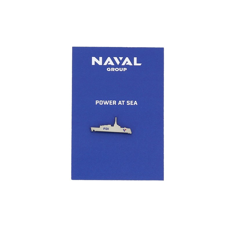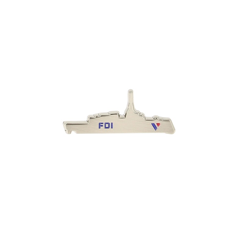 Ce pin’s met en valeur la silhouette emblématique de la frégate de défense et d'intervention FDI à travers un objet sobre et élégant.