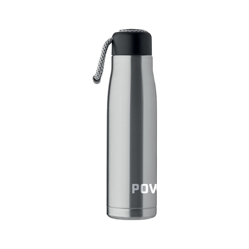 Cette bouteille à double paroi est conçue en acier inoxydable intégrant 90% d'acier inoxydable recyclé. Grâce à sa double paroi, cette bouteille contribue à maintenir la température des boissons, chaudes comme froides. Son format de 500ml s'intègre facilement sur un bureau ou dans un sac. Le bouchon est équipé d'une poignée en corde facilitant la prise en main. La conception anti fuite répond aux contraintes d'un usage quotidien.